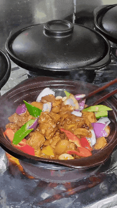 鲜嫩多汁的鸡肉经过腌制翻炒