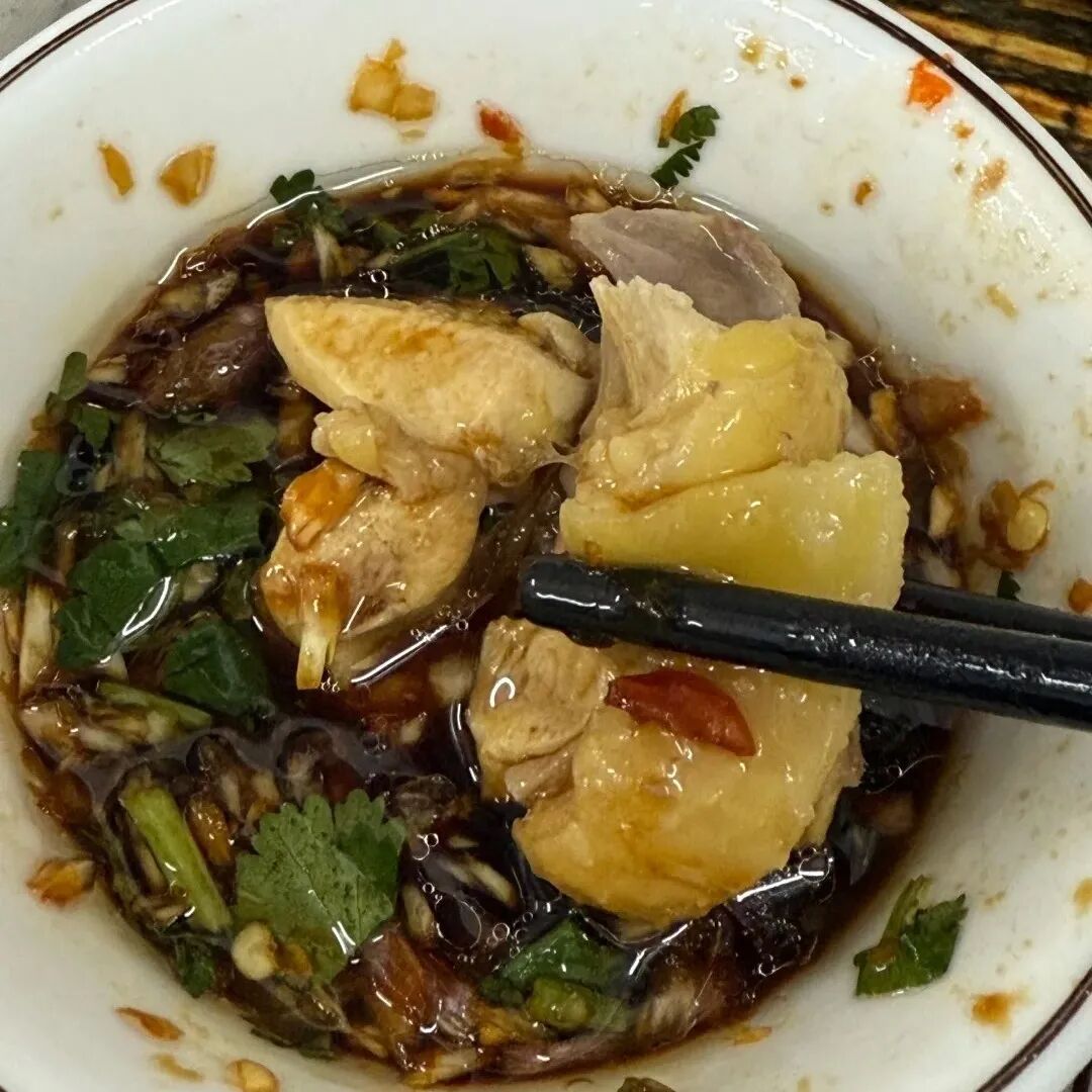 鲜嫩的鸡肉还挂着浓稠的汤汁